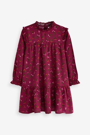 Beerenrot - Hochgeschlossenes Kleid mit langen Ärmeln und Punktedruck (12 Monate - 16 Jahre)