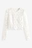 Weiß - Langärmeliges Spitzen-Top für besondere Anlässe