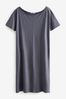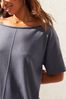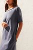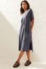 Blau - Sommerkleid aus Jersey mit Leinenanteil und U-Boot-Ausschnitt
