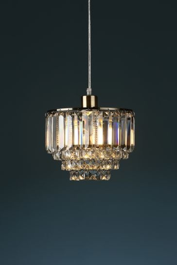 The glamorous Laura Ashley Vienna Chrome 9 light chandelier is an easy-fit shade that fits your existing fitting. Features bevelled glass ‘coffin crystal’ rods with a glittering fountain of square-cut faceted glass droplets that fall to a central point, all suspended from a circular frame in bright polished chrome. Full flush fittings attach directly to the ceiling so are suitable for low ceilings and small rooms, plus they have a neat finish with no visible cables. Bulbs are not included. Takes 9 x 20W max G9. Not height adjustable.