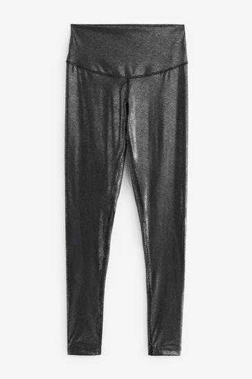 Silber - Lange, glitzernde Leggings mit hohem Bund