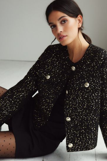 Schwarz/Gold - Bouclé-Jacke mit glitzernden Pailletten