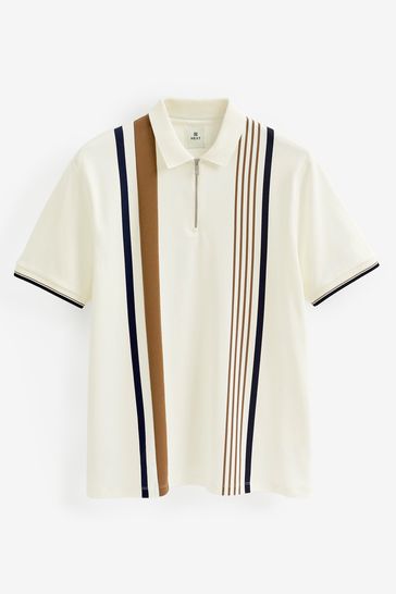 Kurzarm Schwarz/Tan Braun Vertical Block Poloshirt