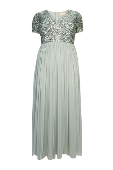 Maya Kurzärmliges Maxikleid mit Pailletten und V-Ausschnitt