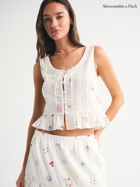 Weiß - Abercrombie & Fitch Strappy Tie Front Top