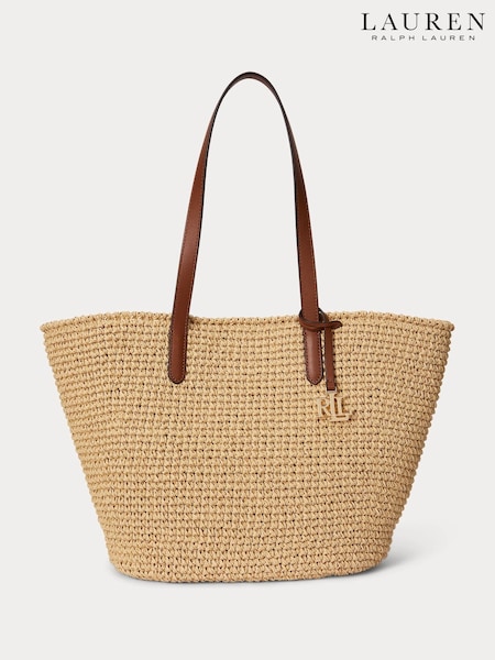 Lauren Ralph Lauren Whitney Tote-Bag aus Stroh und Raffia, Natur