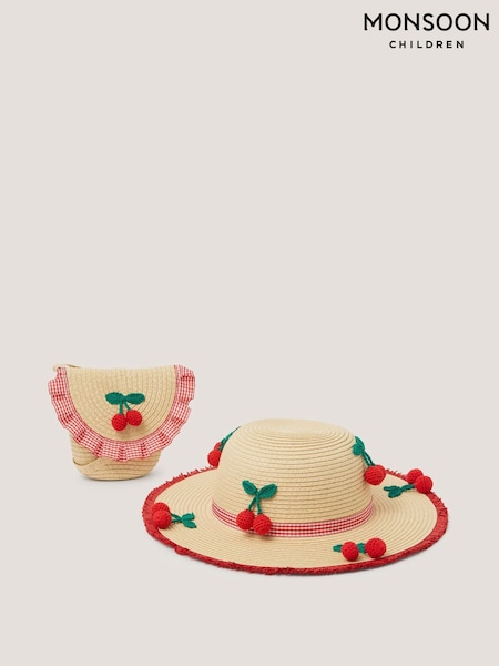 Monsoon Crochet Cherry Straw Hat & Bag Set