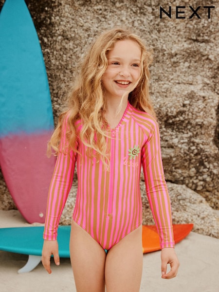 Streifen in Pink/Orange - Langarm-Sonnenschutz-Badeanzug (3Monate–16Jahre)