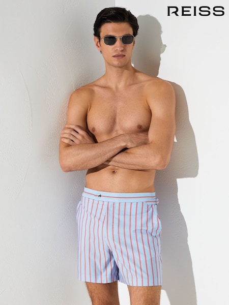 Zartblau - Reiss Presley Pinstripe Side-Adjuster Swim Shorts