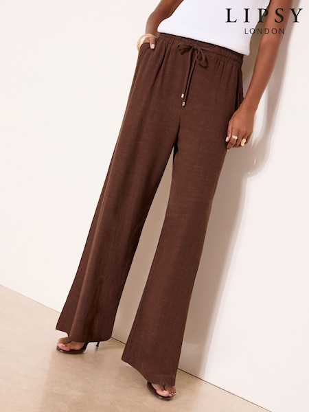 Schokoladenbraun - Lipsy Hosen mit weitem Bein aus Leinen
