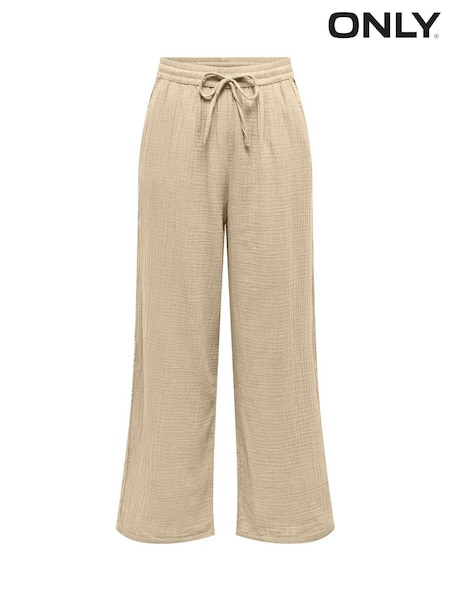 ONLY Textured Cotton Tie Waist Trousers