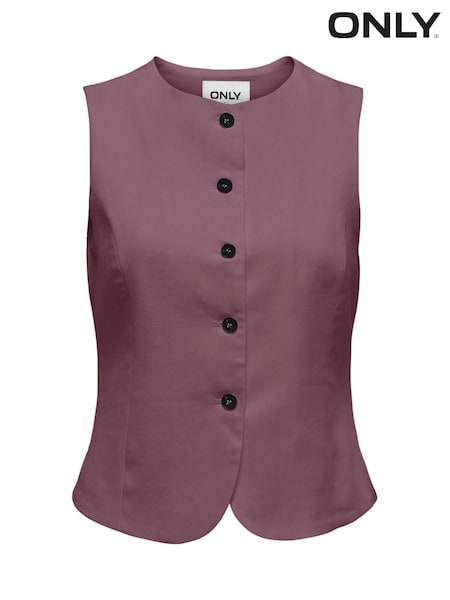 ONLY Round Neck Button Front Linen Blend Waistcoat