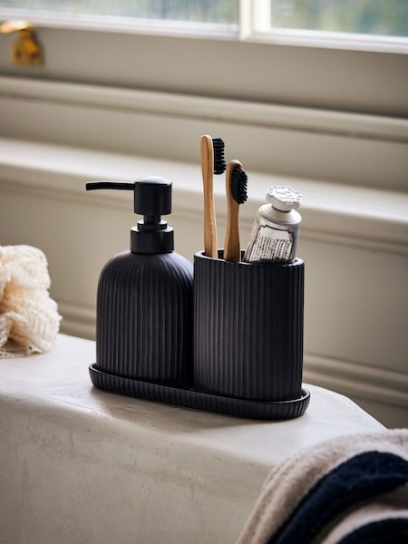 Seifenspender, Zahnbürstenhalter und Tablett, 3er-Set