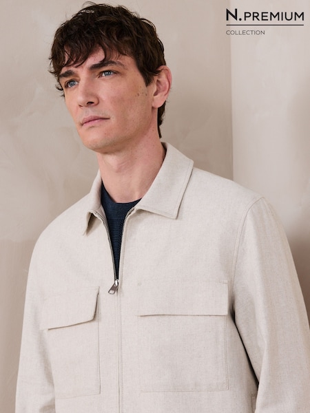 Ecru/Neutral - N. Premium Linen Blend Herringbone Jacket