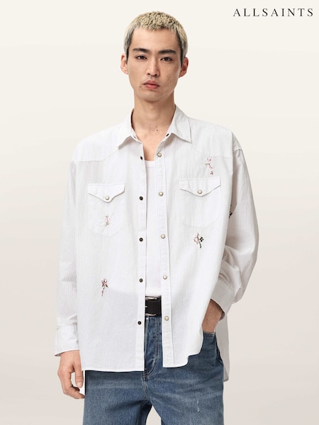 Weiß - Reiss Dunstall Wollgestricktes Overshirt mit durchgehendem Reißverschluss