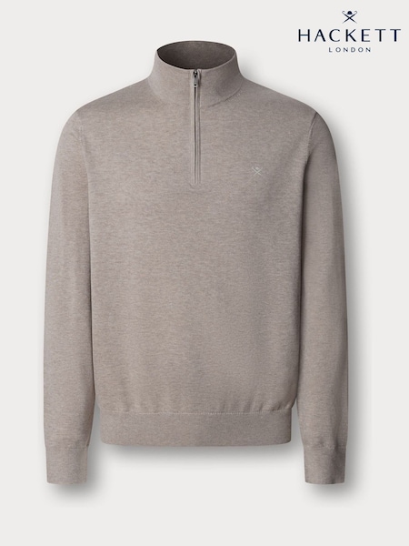 Hackett Heritage Merino-Wollpullover mit Viertelreißverschluss und Abzeichen-Logo, braun