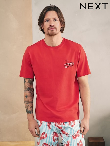 Rot/Blau - Lobster Printed Jersey Short Sleeve Pyjamas Set