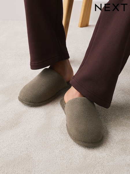 Taupefarben - Frottee Pantolette Hausschuhe