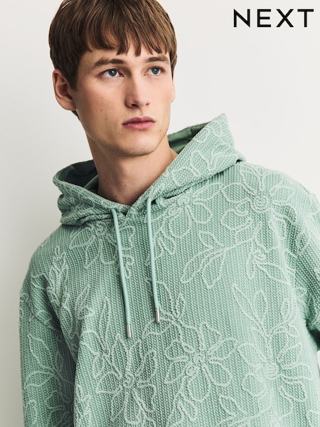 Salbeigrün - Lightweight Textured Floral Hoodie