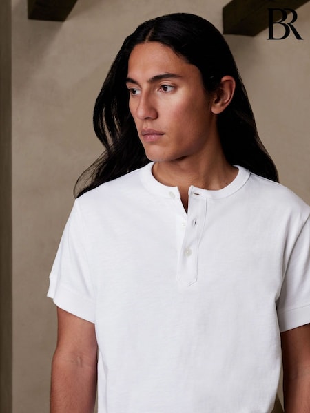 Weiß - Banana Republic Rugged Meliertes Henley-T-Shirt