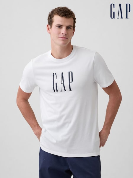Weiß - Gap Everyday Logo kurzärmliges Rundhals-T-Shirt aus 100 % Baumwolle