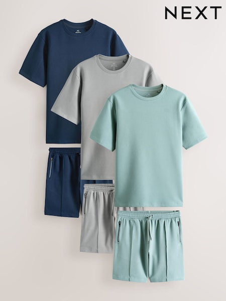 Navy Blue/Grey/Green - T-Shirt and Shorts Set Multipack