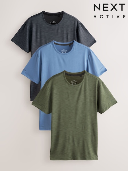 Charcoal Grey/ Khaki Green/ Blue - Kurzarm-T-Shirt - Active Gym Mesh T-Shirts im 3 er-Pack