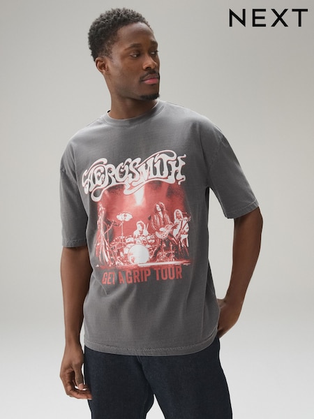 Anthrazitgrau Aerosmith - Bequeme Passform - T-Shirt mit Bandgrafik-Print
