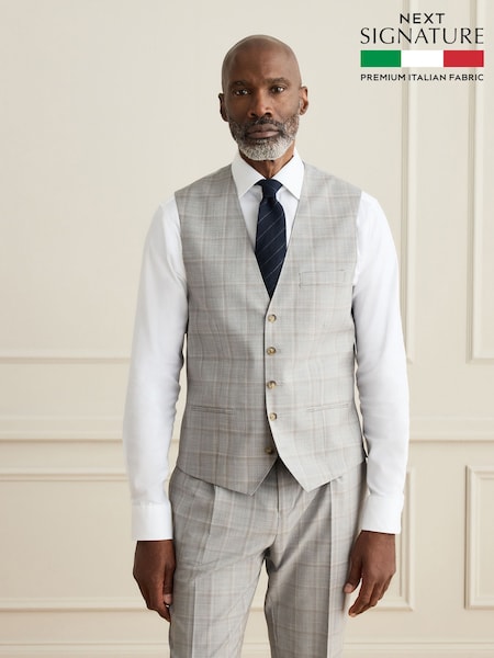 Grau - Signature Zignone Karierter Anzug in Tailored Fit aus 100% italienischer Wolle: Weste
