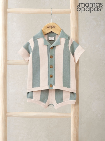 Mamas & Papas Stripe Knitted Short Sleeve Top And Shorts Set