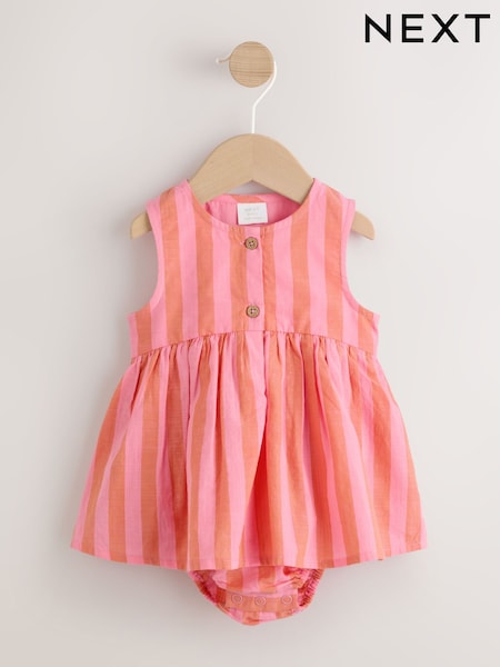 Rostbraun gestreift - Gewebtes Babykleid mit integriertem Body (0Monate bis2Jahre)