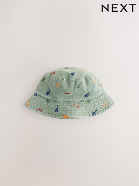Khakigrün - All-Over Embroidered Dinosaur Bucket Hat (3mths-10yrs)