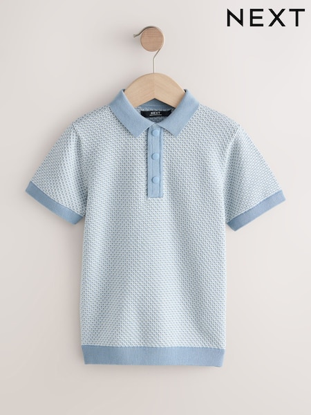 Blau - 100% Baumwolle Kurzarm Geo Pattern Poloshirt (3-16Jahre)