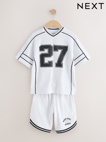 Weiß - Varsity-T-Shirt und Shorts-Set (3–16Jahre)