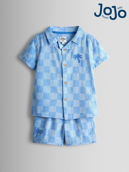 Blau - JoJo Maman Bébé – 2-teiliges Hemd- und Shorts-Set