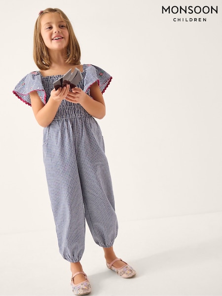 Monsoon – Vichy-Jumpsuit mit Blumenstickerei