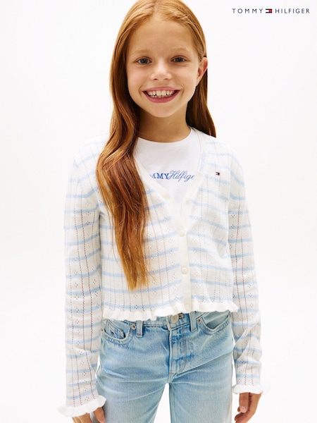 Tommy Hilfiger Pointelle Ruffle Trim V-Neck Cardigan