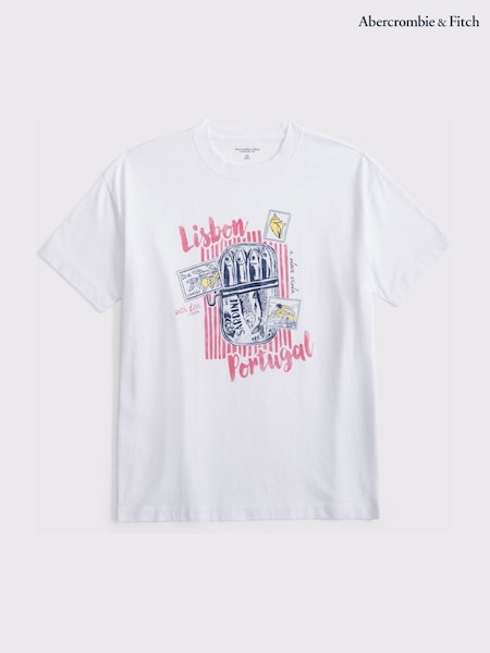 White Lisbon - Abercrombie & Fitch Graphic Oversized T-Shirt