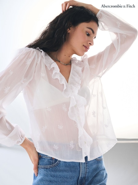 Weiß - Abercrombie & Fitch Langärmlige Bluse mit Bindeband vorne