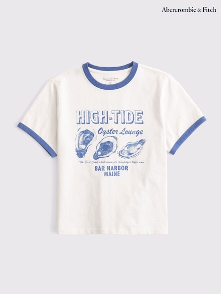 Cream - Abercrombie & Fitch Short Sleeve Oyster Graphic Skimming T-Shirt