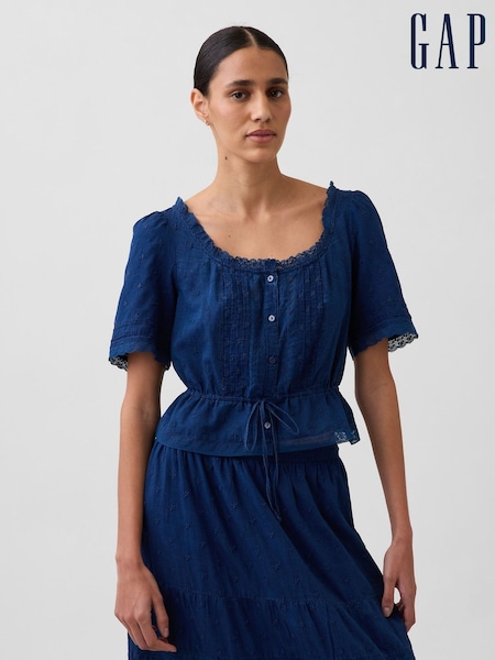 Blau - Gap Oberteil mit Spitzenbesatz und Schößchen
