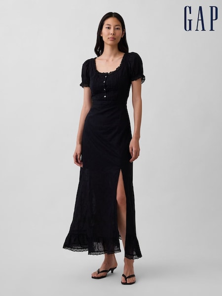 Schwarz - Gap Besticktes Maxikleid mit Puffärmeln