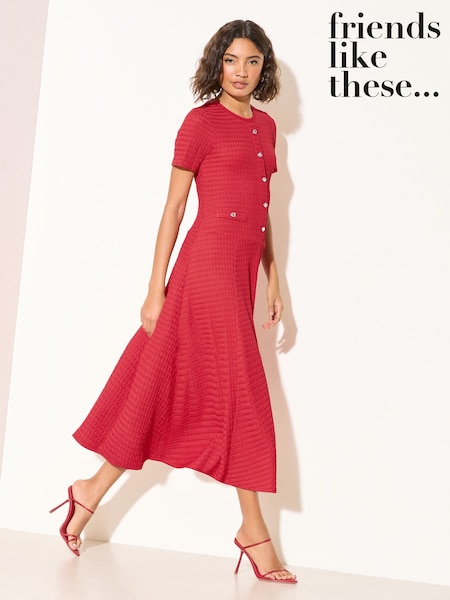 Beerenrot - Friends Like These kurzärmliges Midikleid in Tailored-Fit mit Laschen-Detail