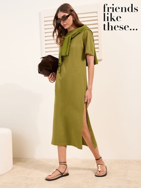 Olivgrün - Friends Like These T-Shirt-Midikleid aus Jersey