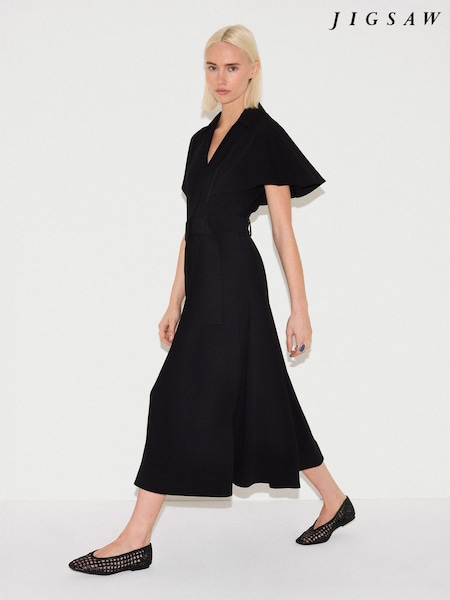 Schwarz - Jigsaw Cape-Ärmel Hemdkleid mit Gürtel