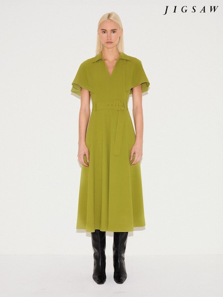 Grün - Jigsaw Merino-Kaschmir-Kleid mit Bindung
