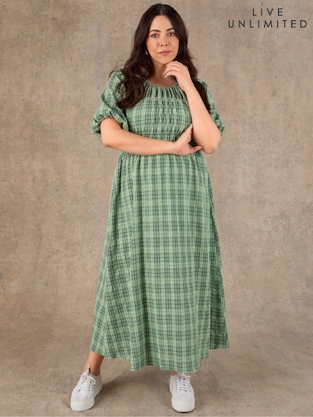 Live Unlimited Check Shirred Maxi Dress