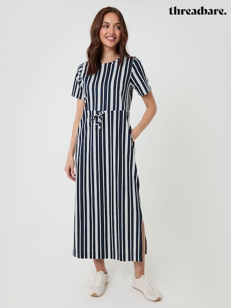 Threadbare Drawstring Waist Side Split Cotton Jersey Midi Dress