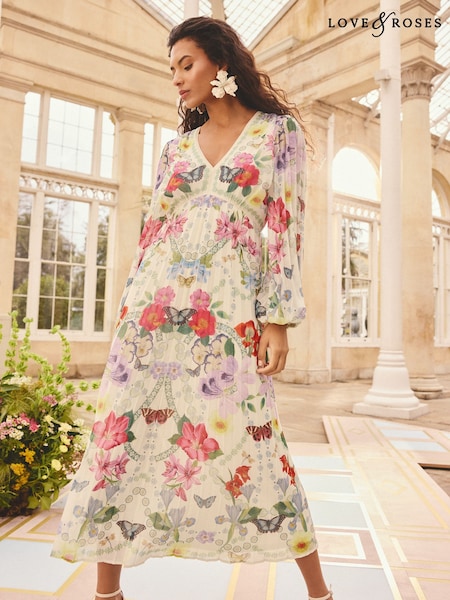Love & Roses Chiffon Plissiertes Midi-Kleid