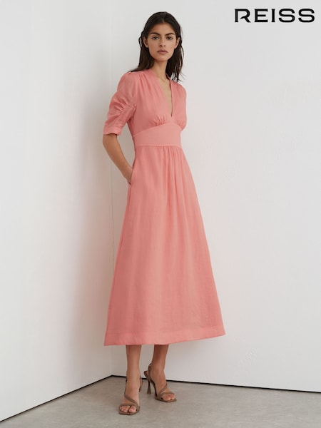 Reiss Poppy Short-Sleeve Waisted Midi Dress